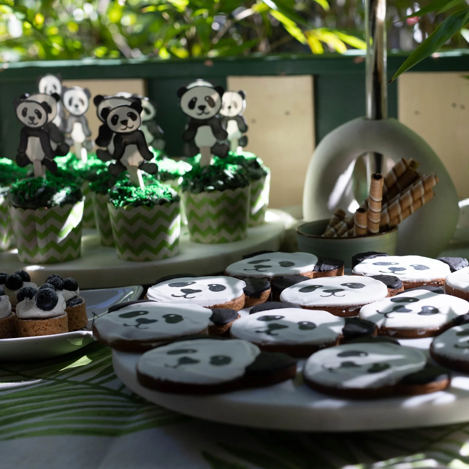 I also made chocolate Nutella cupcakes decorated with green sprinkles in green striped cupcake cases to represent bamboo. On top I added my custom designed hand-painted watercolour panda cupcake toppers. The cupcake toppers have been working really well at my parties, guests really love them and most cupcake toppers end up heading home as souvenirs of the event at the end of the day.