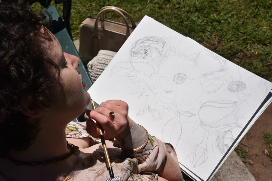 After our initial briefing and discussion, I first create a pencil drawing for your approval. This is where your idea takes flight.